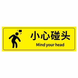 小心碰头提示贴安全标识牌警告标志当心碰头警示牌商场超市公司企业楼梯注意碰头温馨提示贴纸墙贴标签贴定制