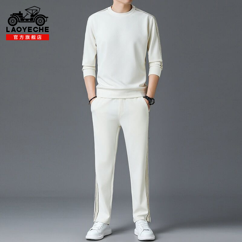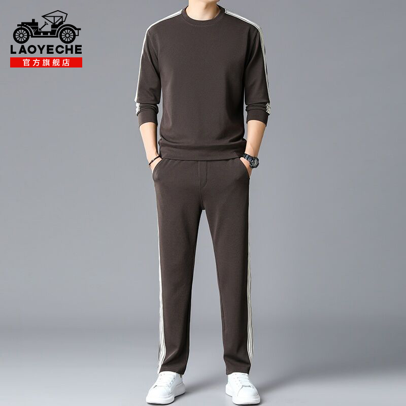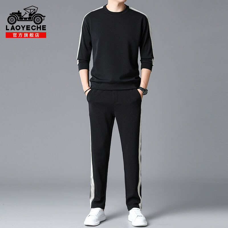 男士 圆领卫衣搭配休闲裤 2025春秋季 长袖 一套男 新款 老爷车运动套装
