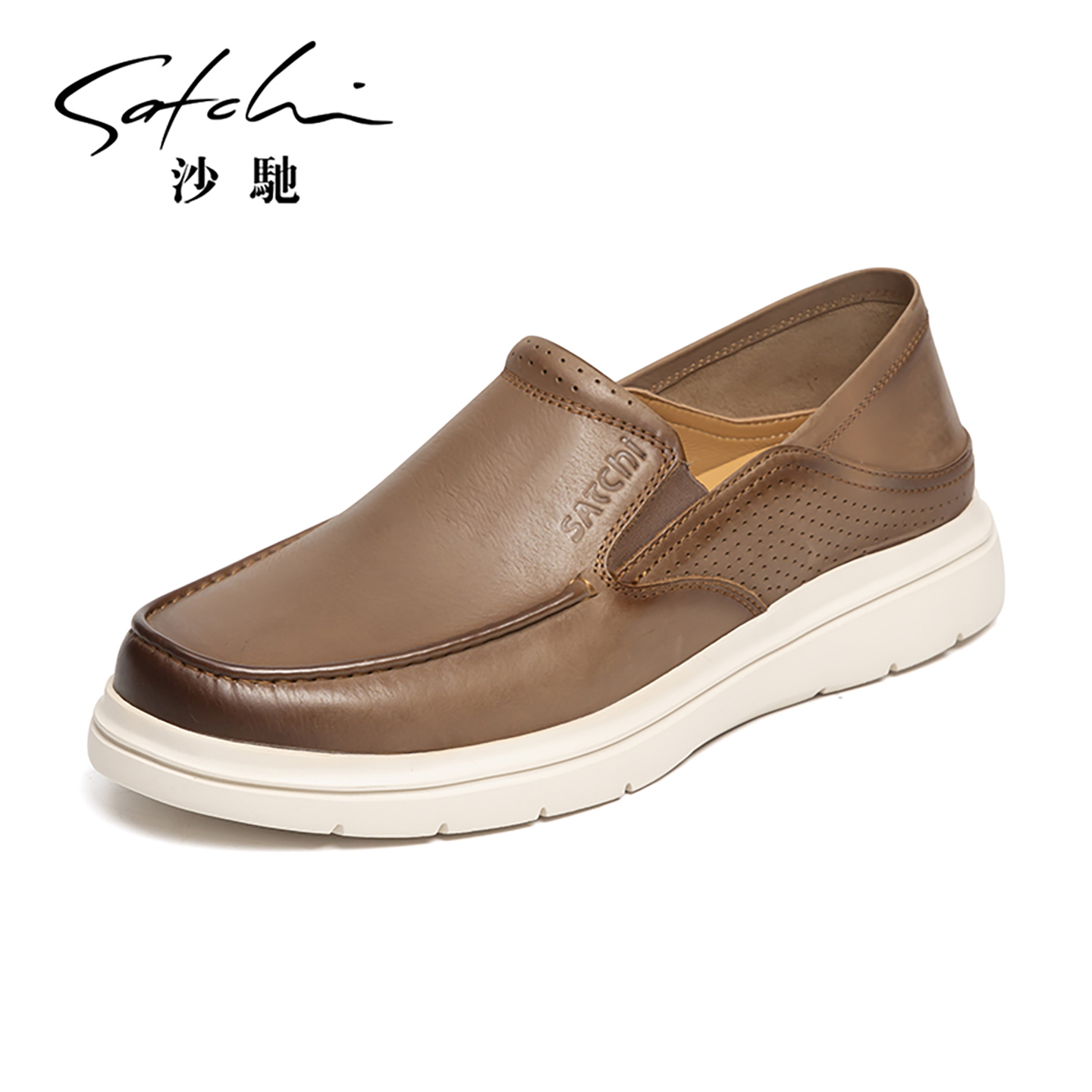 男士 潮流真皮轻便软底透气百搭乐福鞋 休闲鞋 男式 男款 沙驰男鞋