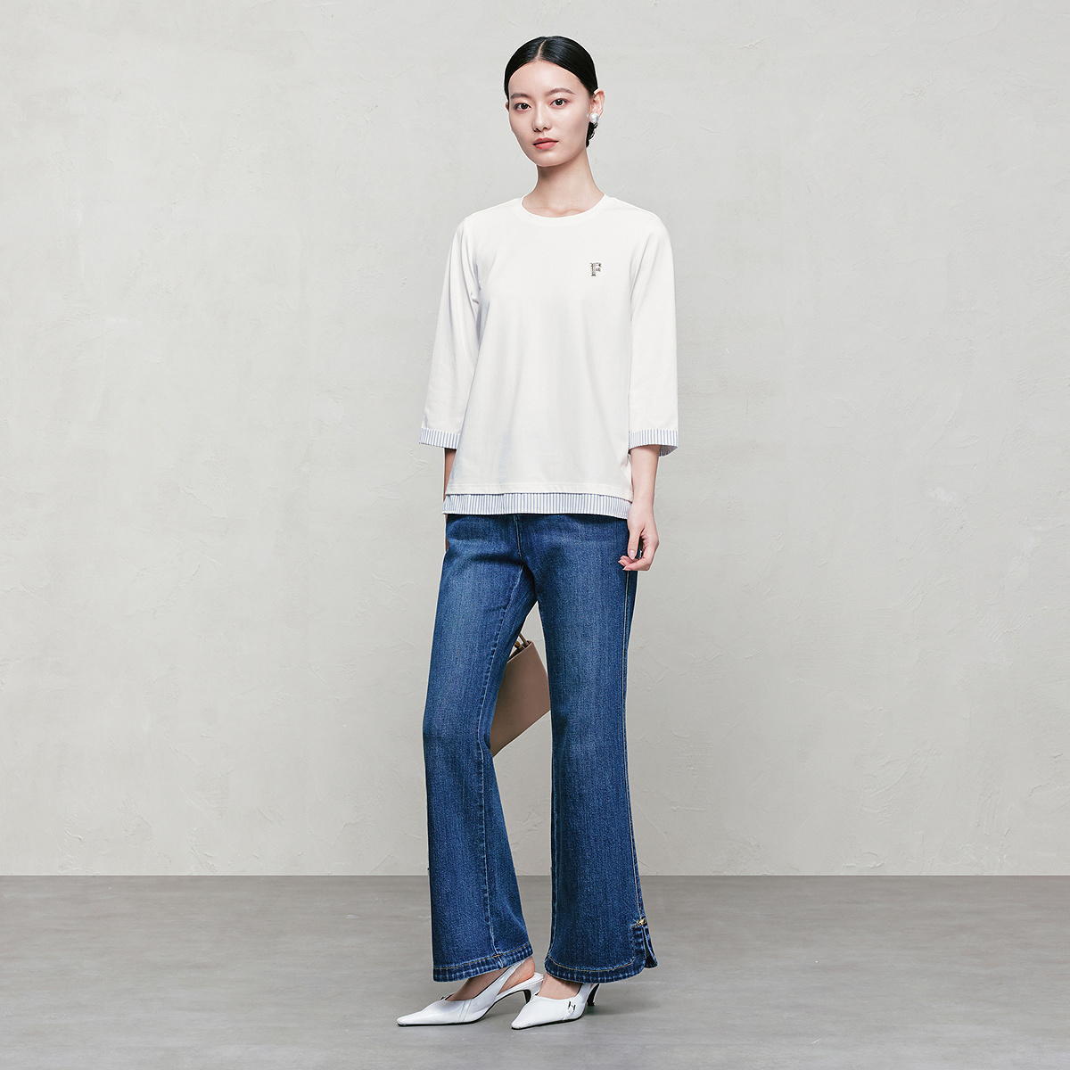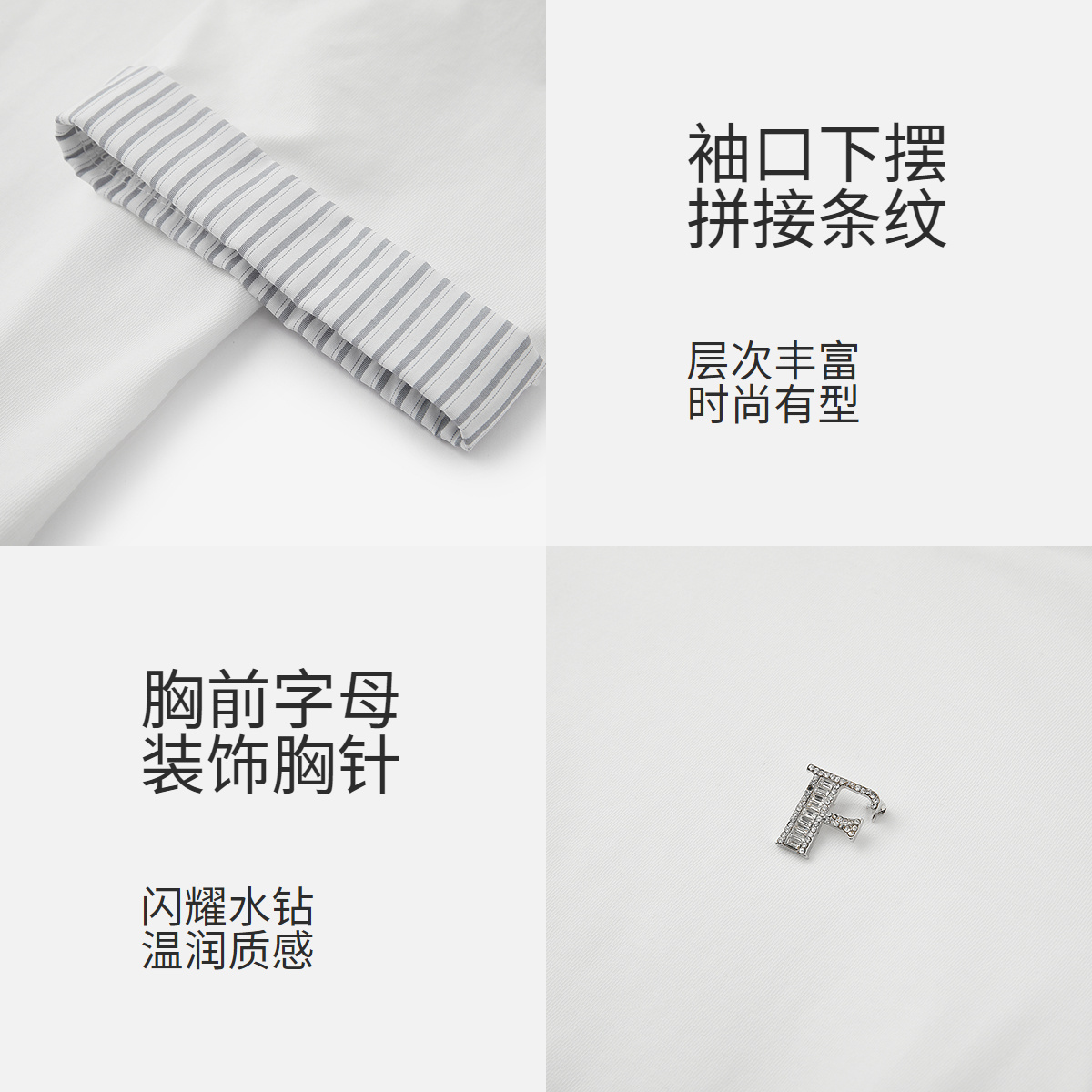 FINITY菲妮迪T恤2025年秋季 简约气质圆领通勤条纹拼接上衣女 新款