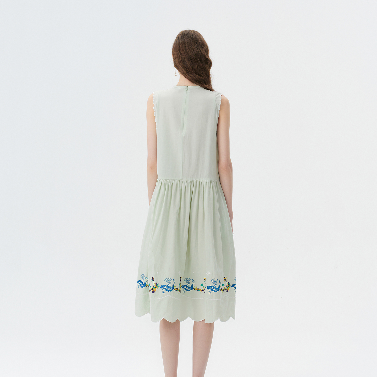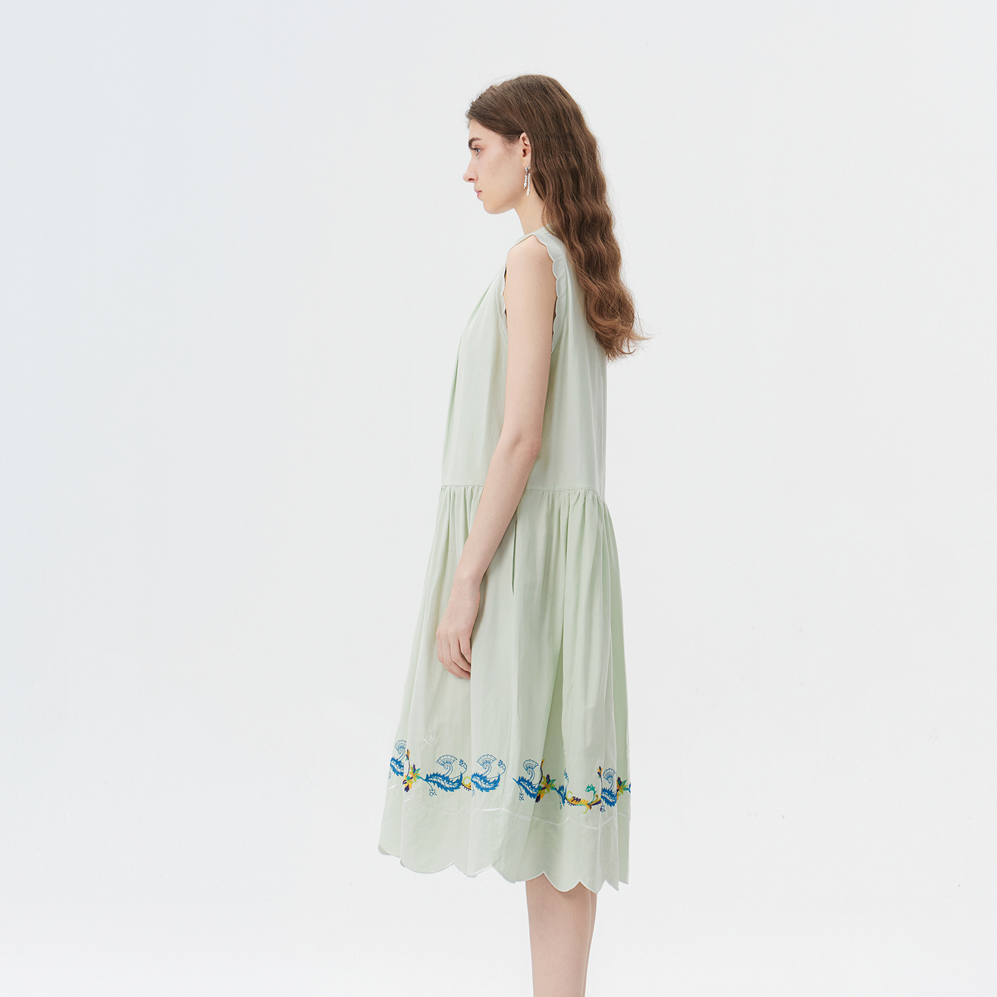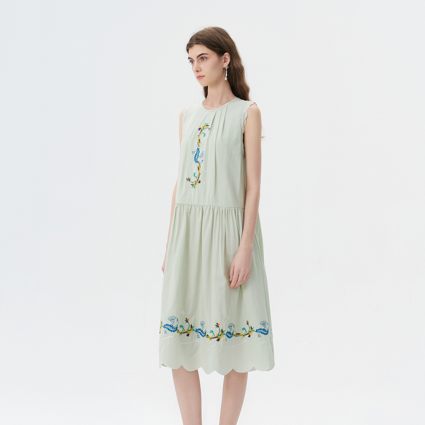 tanni25秋新款 度假感莱赛尔棉混纺绣花显瘦连衣裙女TO11DR161A