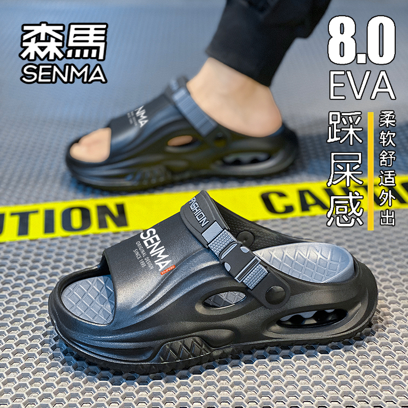 厚底两用开车运动沙滩凉鞋 外穿防滑防臭包头拖鞋 男夏季 森马洞洞鞋