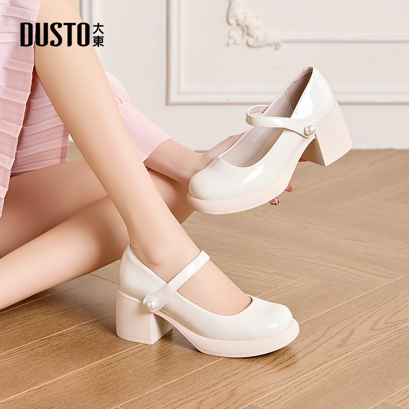仙女风瓢鞋 秋季 浅口百搭中跟奶奶鞋 大码 真皮单鞋 女鞋 粗跟2025新款