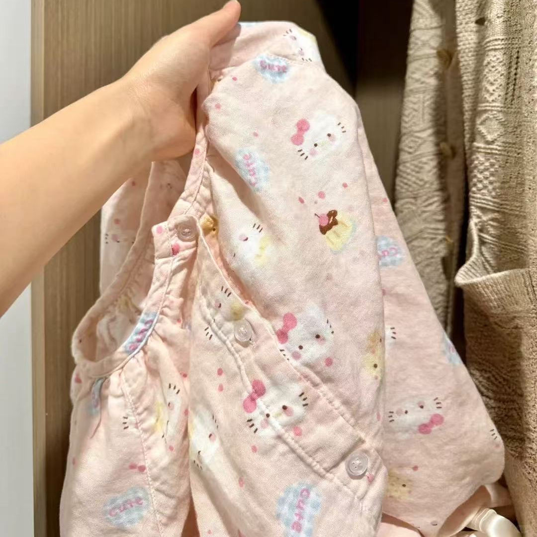 长裤 粉粉猫纯棉双层纱布可爱卡通印花长袖 睡衣家居服 新款 2025