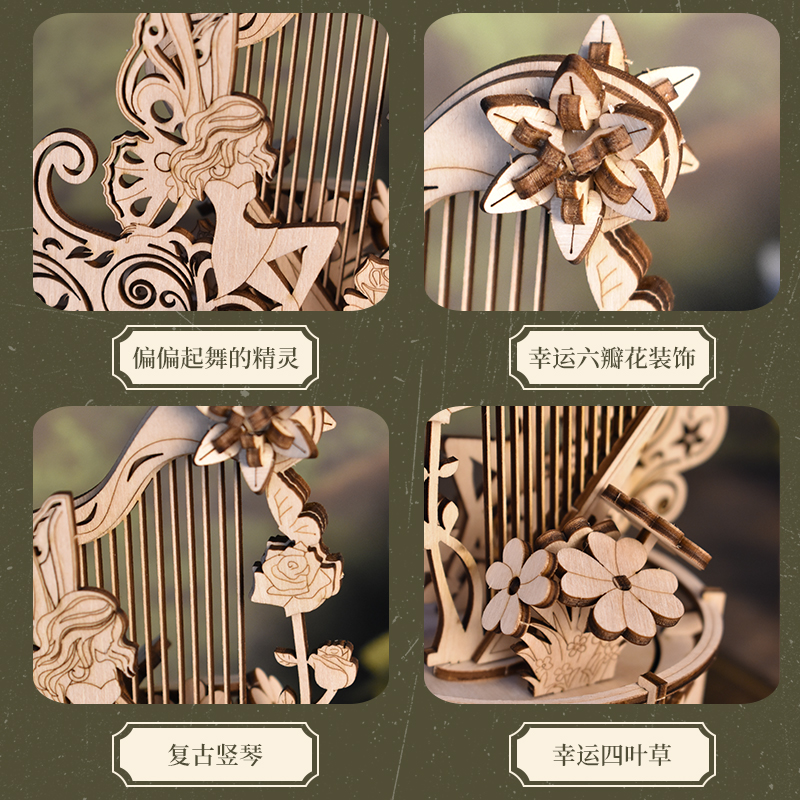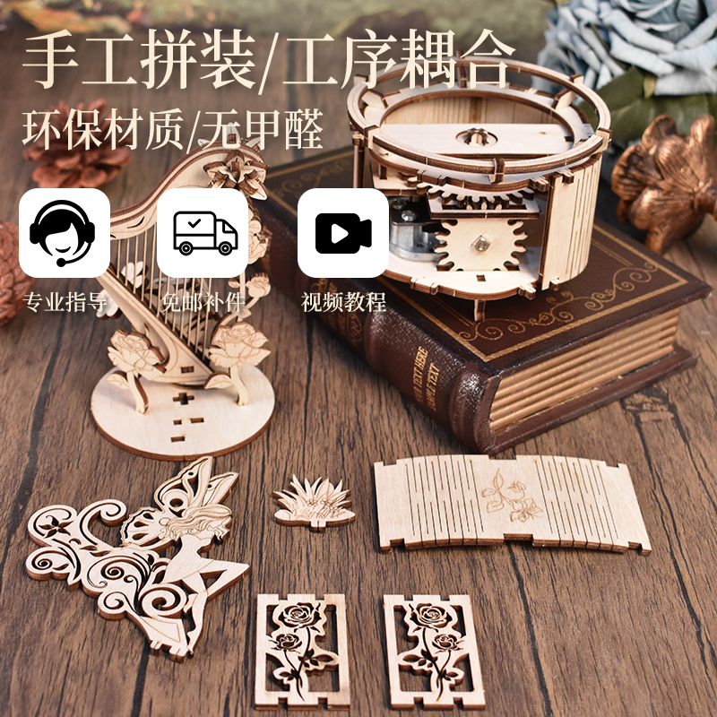 木质机械竖琴八音盒diy手工音乐盒拼装 生日礼物品创意送闺蜜
