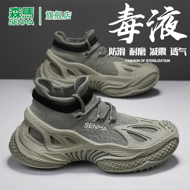 黑武士百搭厚底青少年跑步鞋 轻便飞织网面运动休闲鞋 秋季 森马男鞋
