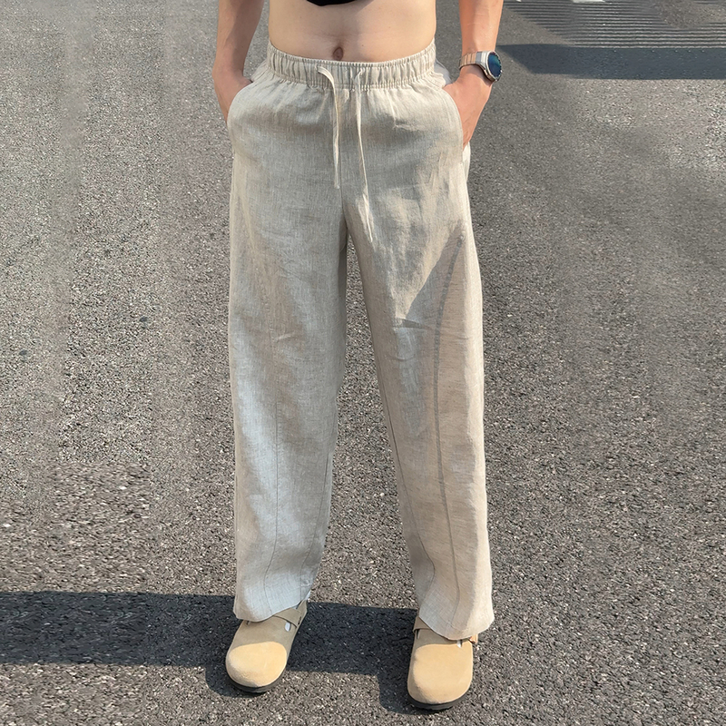 立体剪裁潮流百搭宽松直筒休闲裤 薄款 男 子男夏季 莱赛尔亚麻休闲裤