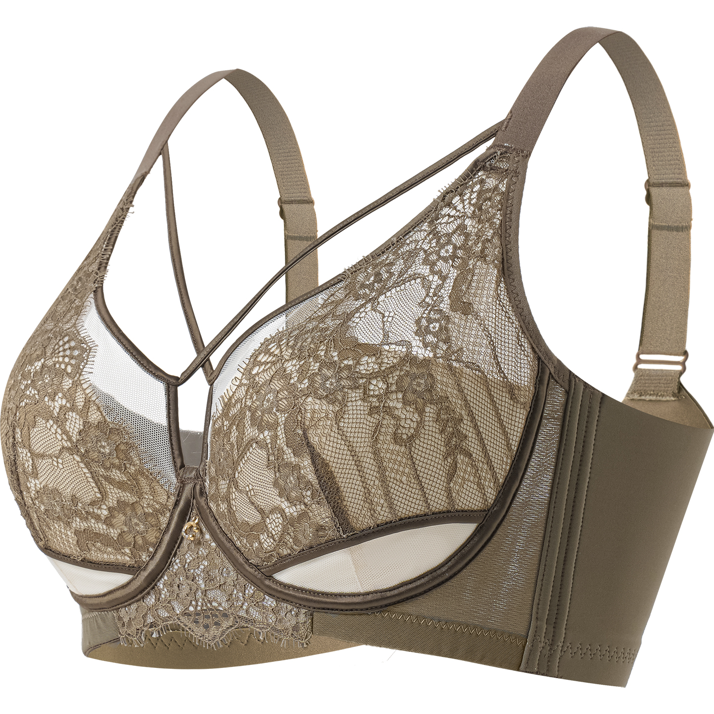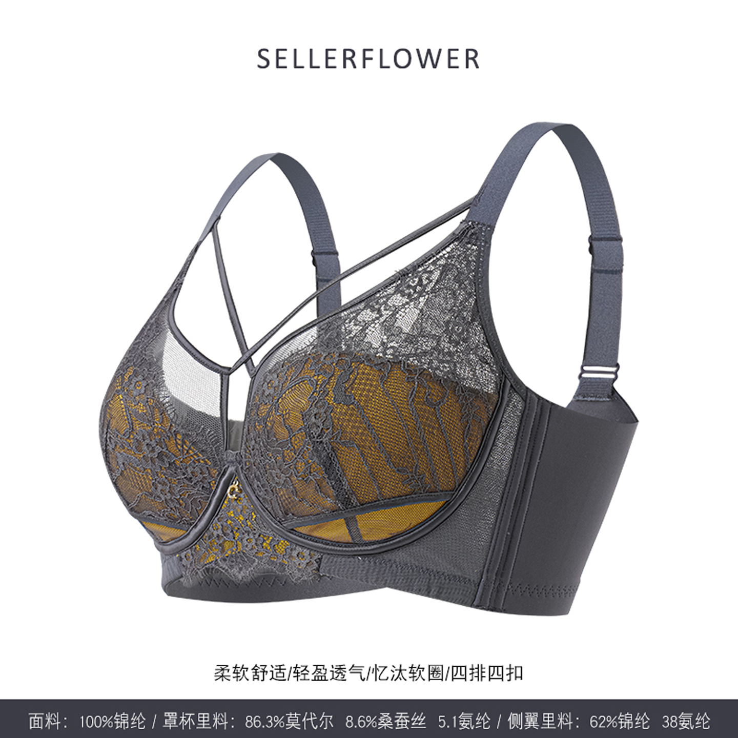 桑蚕丝调整型内衣女法式 纯色性感蕾丝花边软钢圈收副乳防下垂文胸