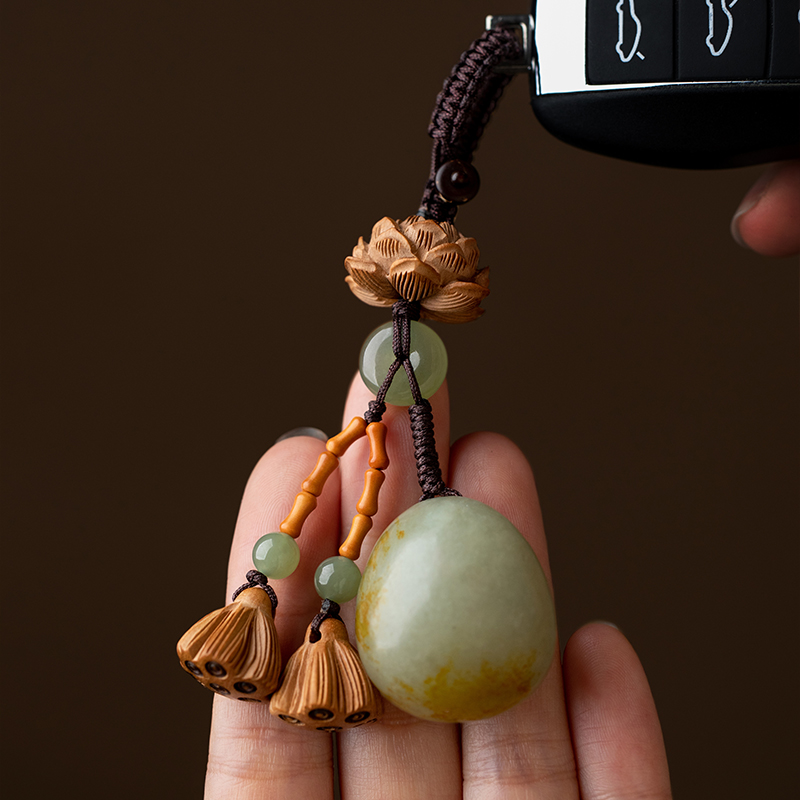 和田玉莲花钥匙扣挂件汽车钥匙挂饰精致手机链男女饰品玉石吊坠