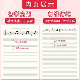思进五线谱本简谱练习本16K初学者宽距加厚小学生儿童4mm大间距练习册钢琴吉他乐谱专业音乐识谱本通用乐理本