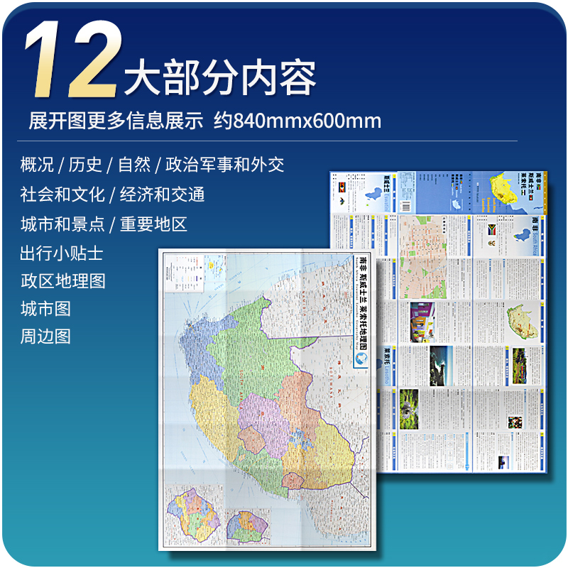 斯威士兰 南非 莱索托地图84x60cm防水折叠 世界分国地理图系列 社 星球地图出版 星球社直营