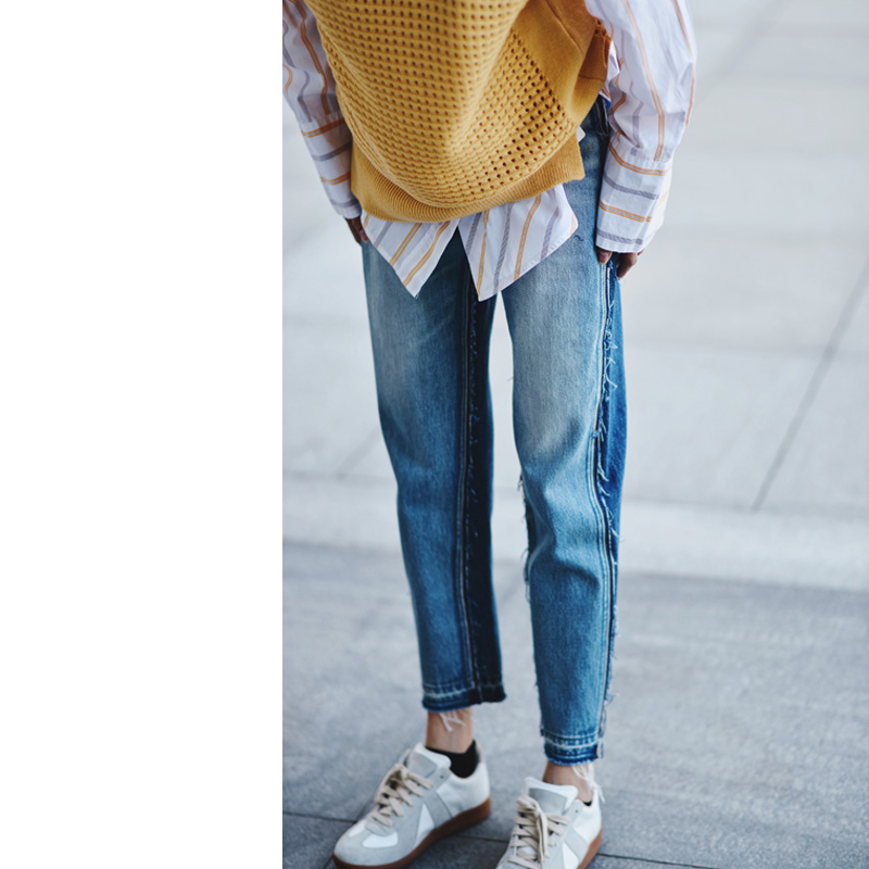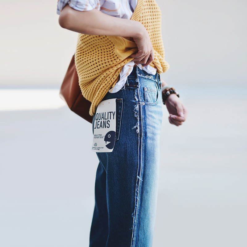 撞色拼接毛边牛仔裤 时髦藏肉 女直筒锥形2025 高JI洗水 此时®各自