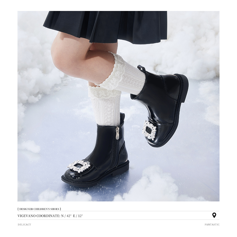 斯纳菲女童靴子儿童短靴小女孩水晶靴2025秋冬新款 公主单皮靴 时尚