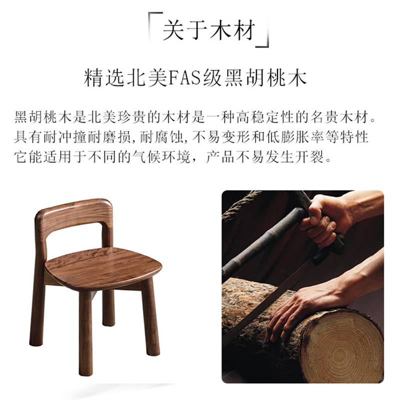 小兔匠北美黑胡桃木小板凳儿童椅子换鞋 凳带靠背矮凳全实木客厅凳