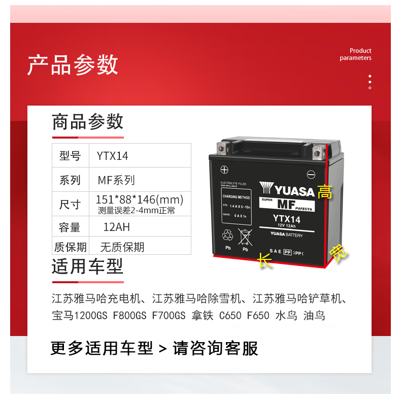 豪爵GW250骊驰DL铃木GSX250光阳400赛艇300摩托车通用电池12v电瓶