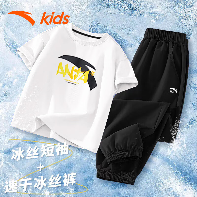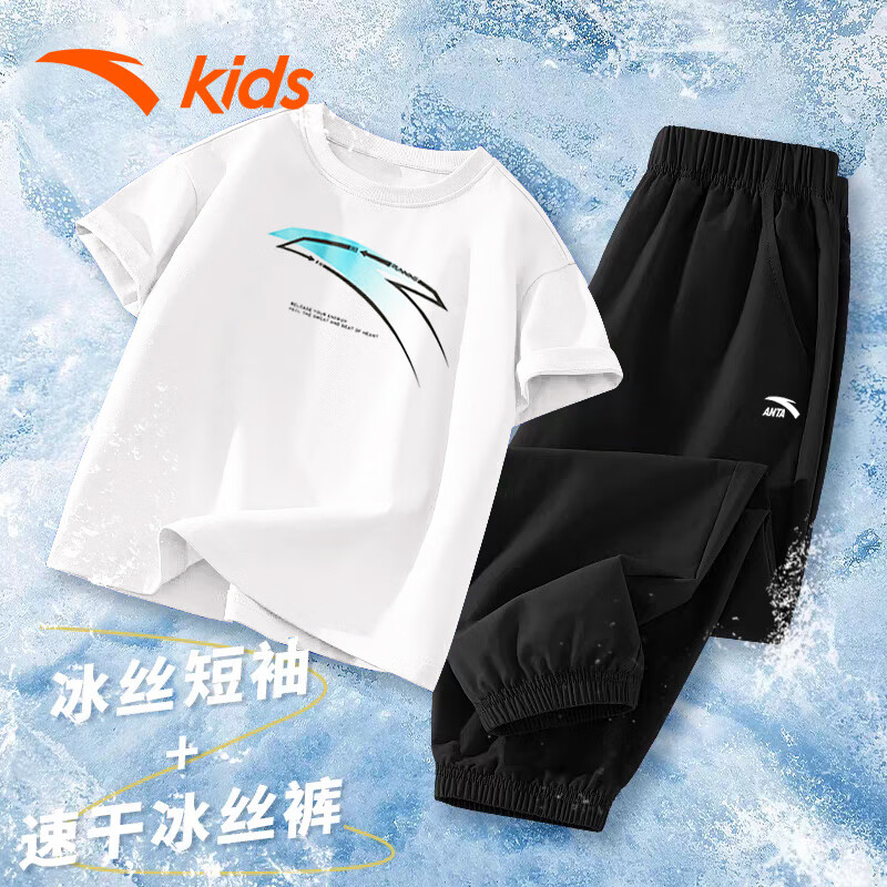 男士 夏季 跑步速干衣服短袖 短裤 回力冰丝休闲运动健身套装 男装 男款