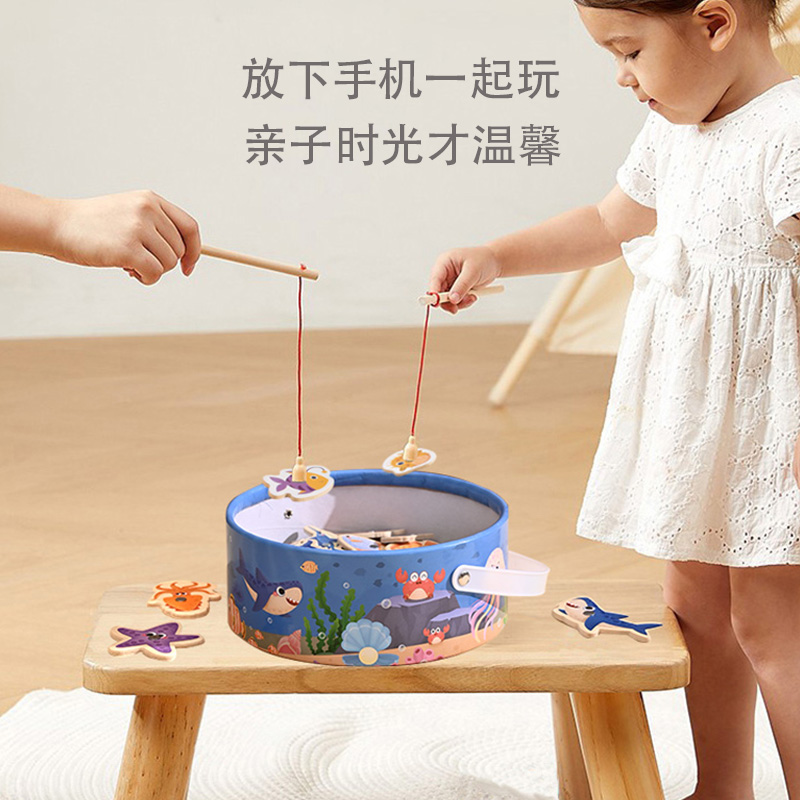 宝宝木制磁性钓鱼玩具儿童三岁益智玩具一12
