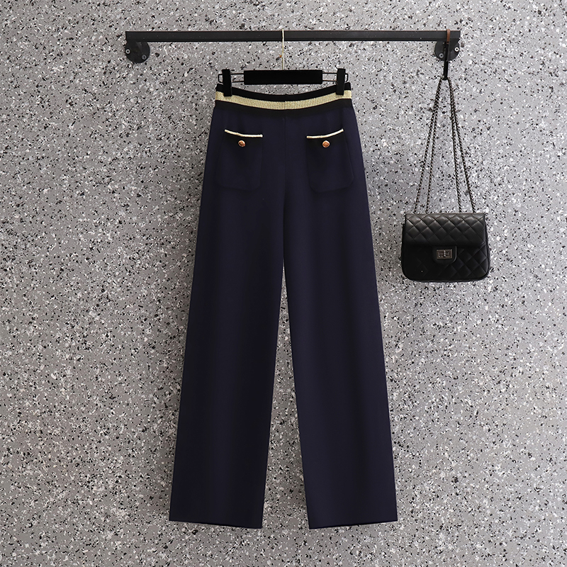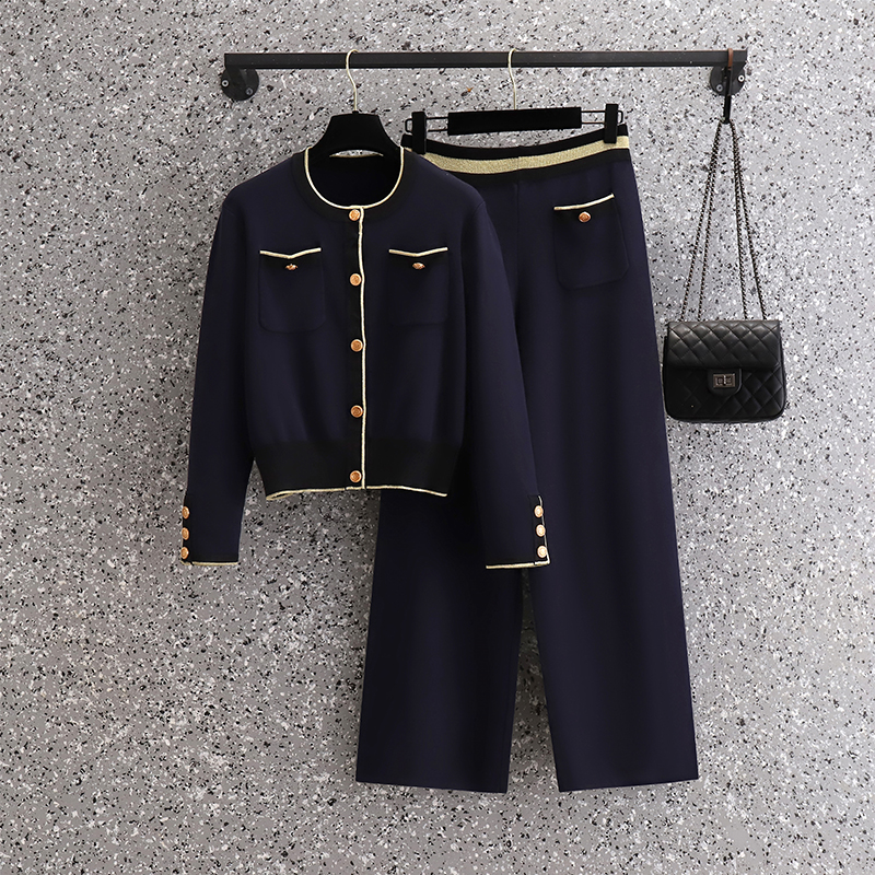 秋胖妈妈松紧腰裤 针织毛衣套装 子两件套 女士小香风长袖 中老年大码
