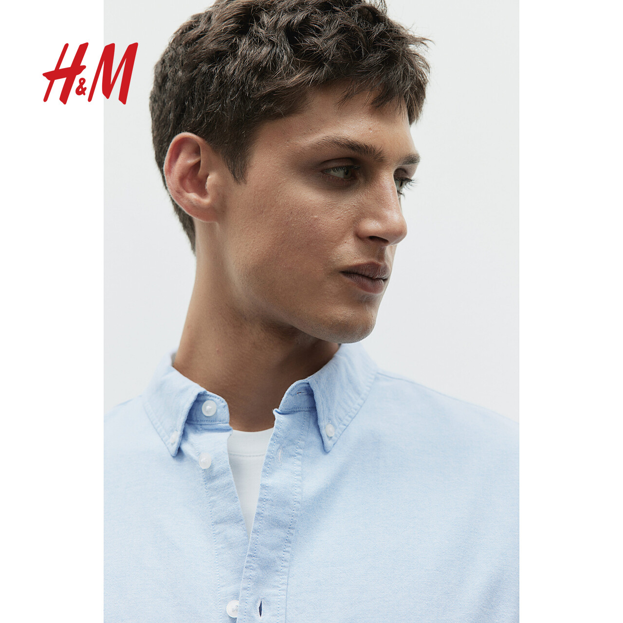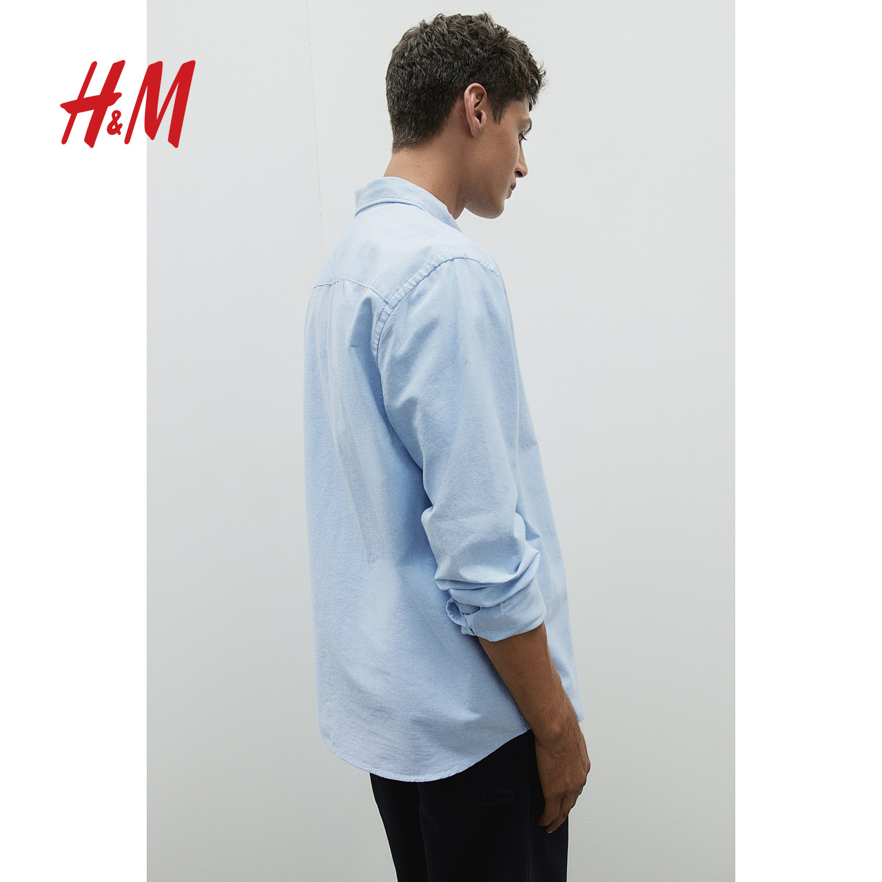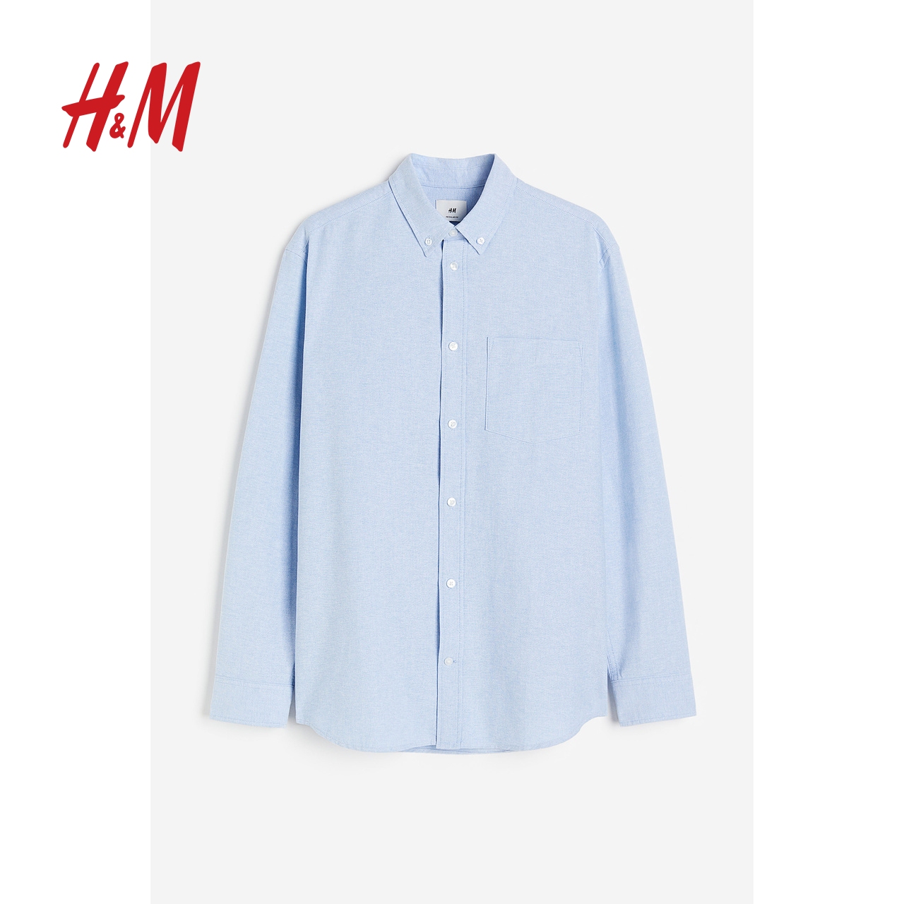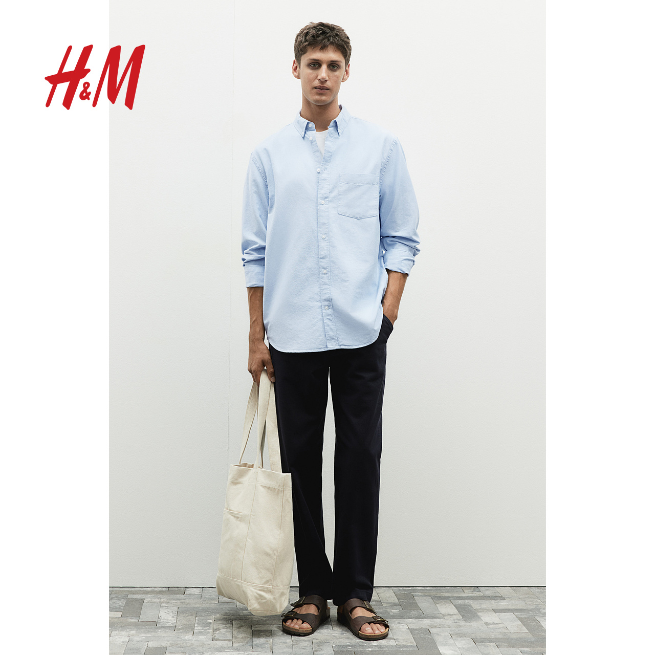 秋季 衬衫 舒适休闲廓形棉质纽扣领牛津纺衬衣1013956 长袖 HM男装