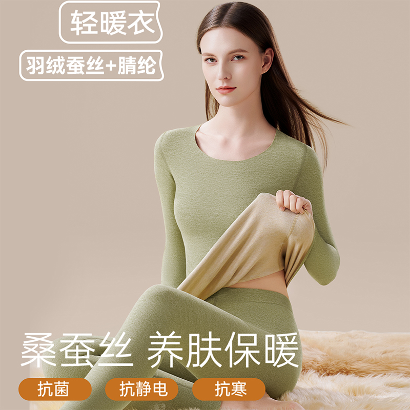 薄款 套装 德绒保暖内衣女士加绒加厚发热打底秋衣秋裤 鸭鸭2025新款