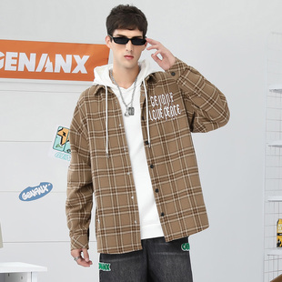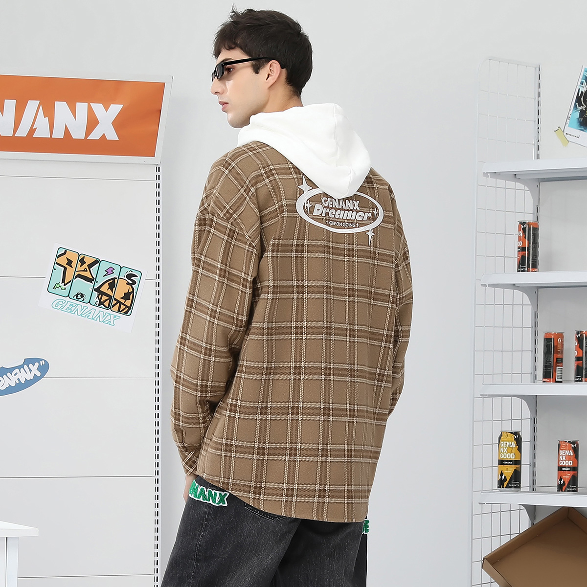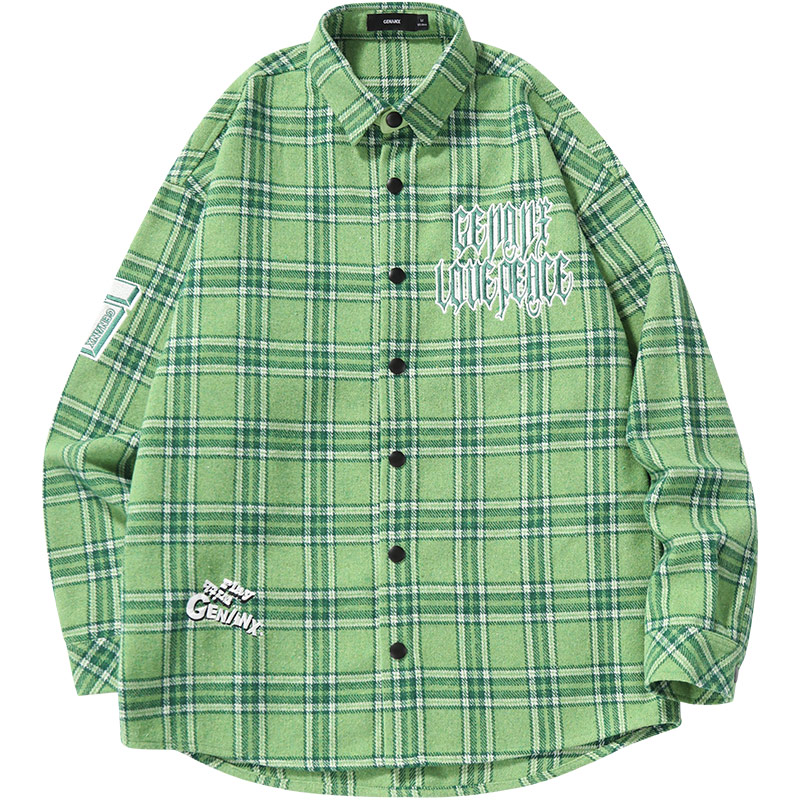 外套情侣款 秋季 字母绣花新款 格子衬衫 长袖 GENANX闪电潮牌磨毛衬衫