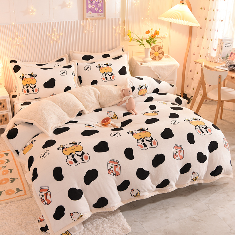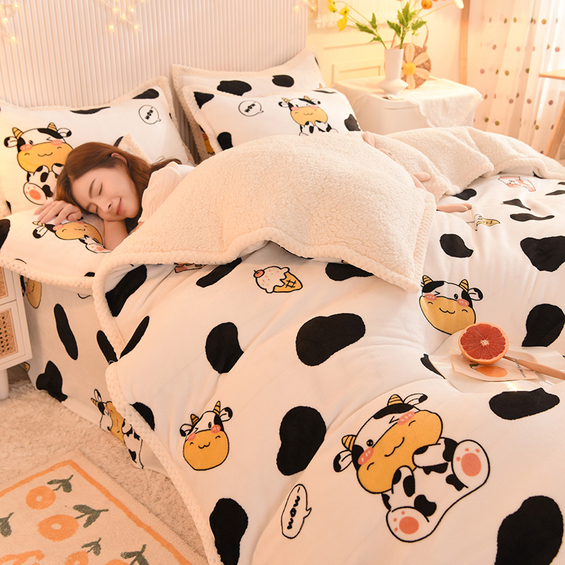 无印良品全棉床单学生宿舍纯棉卡通儿童被套秋冬三件套床上用品