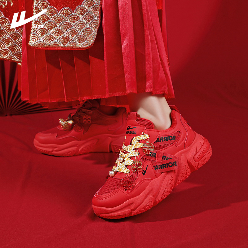 新款 秋季 新娘鞋 大红色结婚运动鞋 回力女鞋 网面老爹鞋 配秀禾服婚鞋