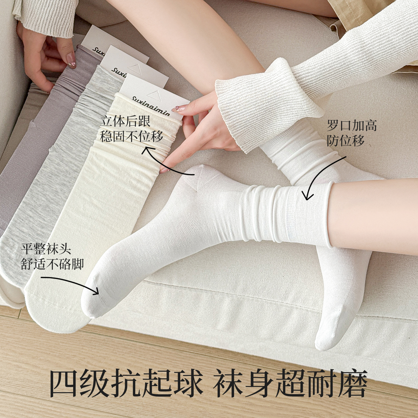堆堆袜子女春秋款 白色中筒运动袜纯棉 长筒月子袜防臭诸暨配勃肯鞋