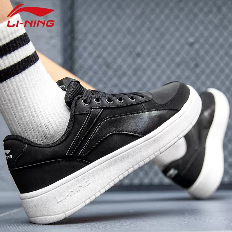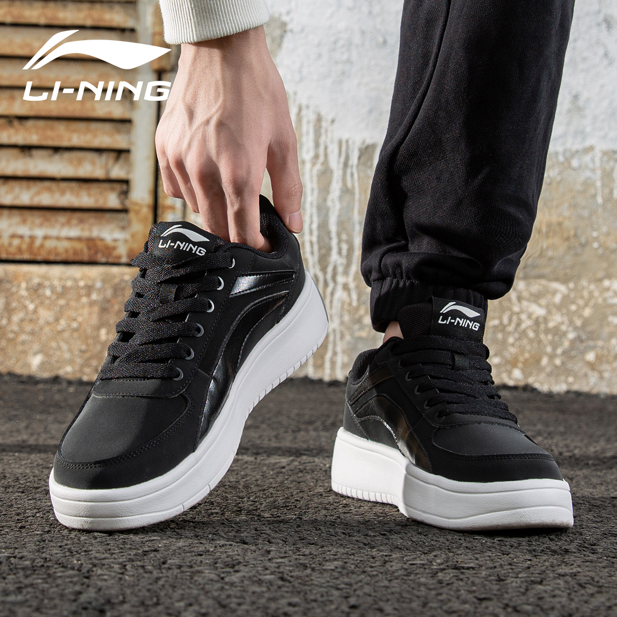 休闲鞋 李宁板鞋 百搭黑色皮面透气轻便运动经典 新款 男子2025夏季
