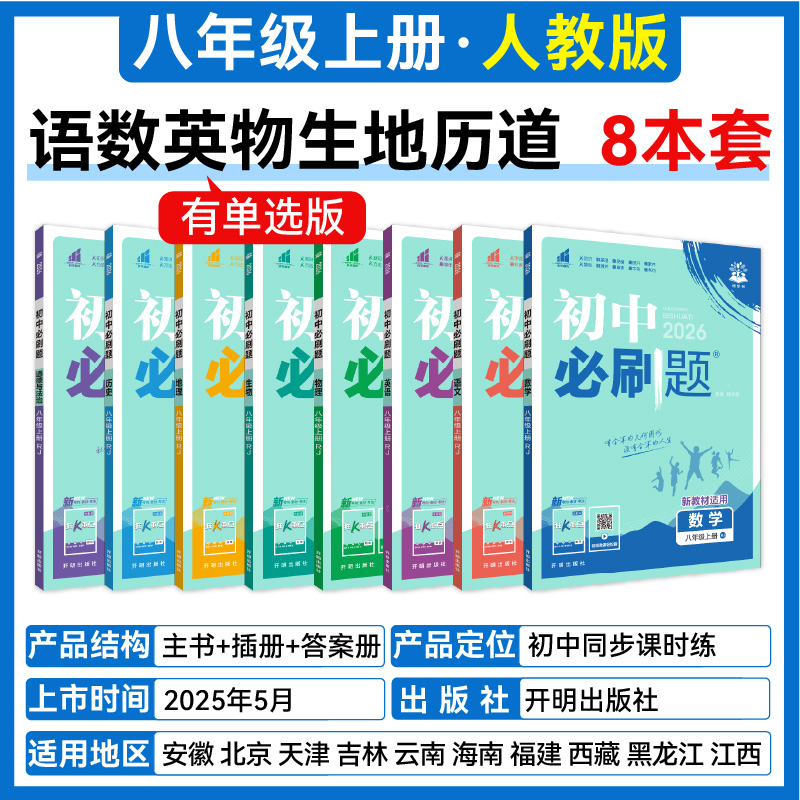 2026初中必刷题八年级上册物理数学语文英语历史生物地理道德与法治八上人教版 教材同步练习册试卷初中必刷题狂K重点教辅