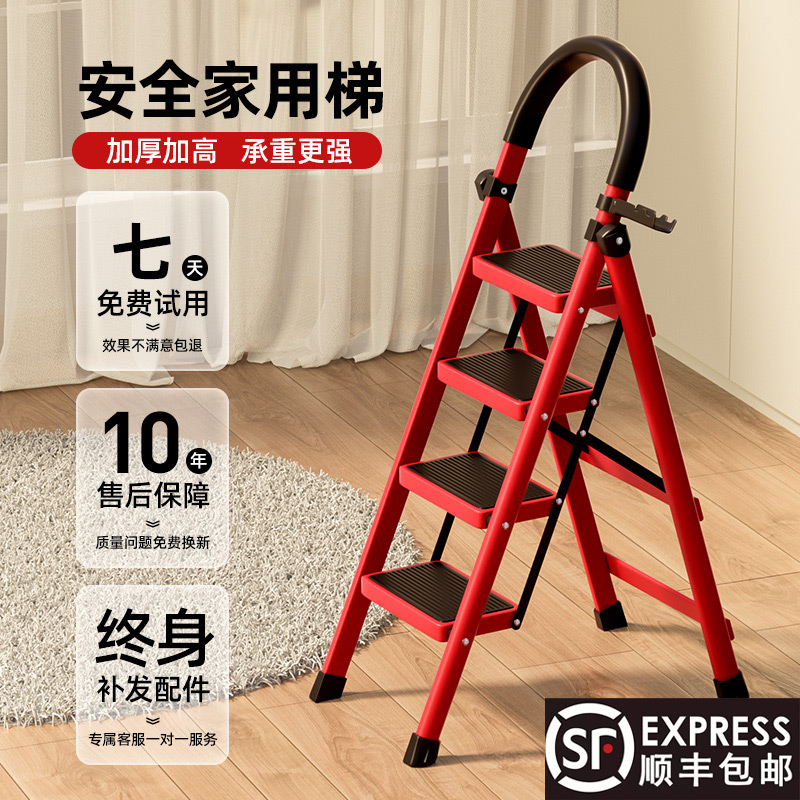 家用梯子伸缩人字梯加厚折叠梯乔迁之喜红色楼梯合金十大品牌专用