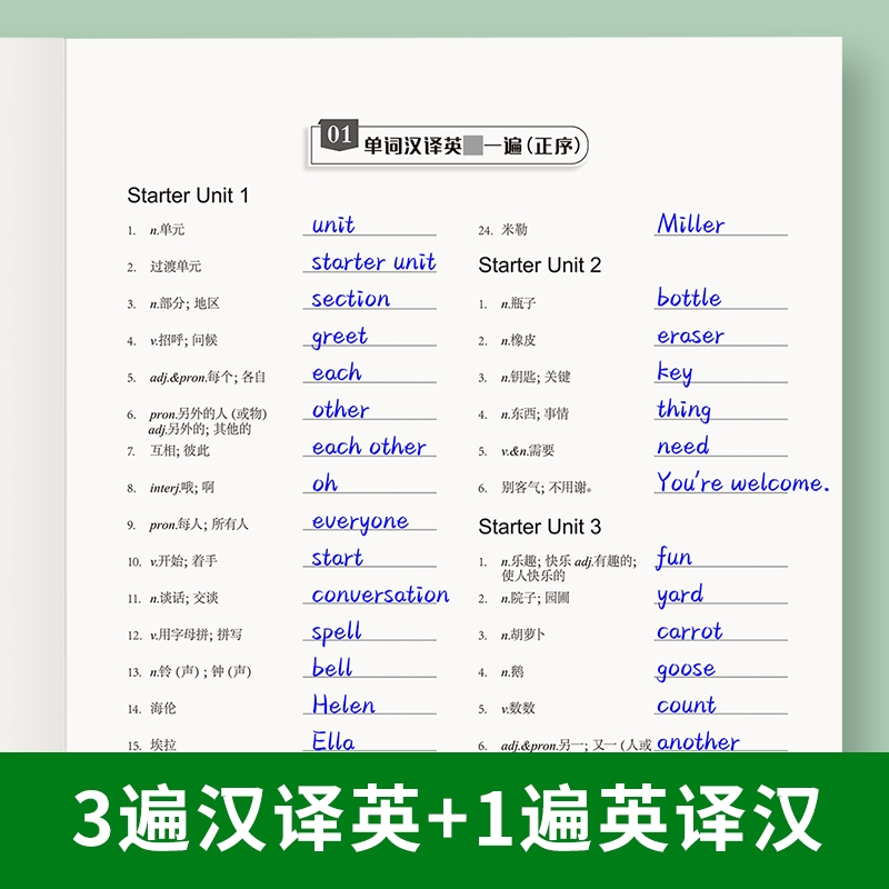 初中英语七八九年级单词记忆本听写本默写本英汉互译练习中考英语词汇基础背诵检测英语本 默写100人教版 易蓓严选