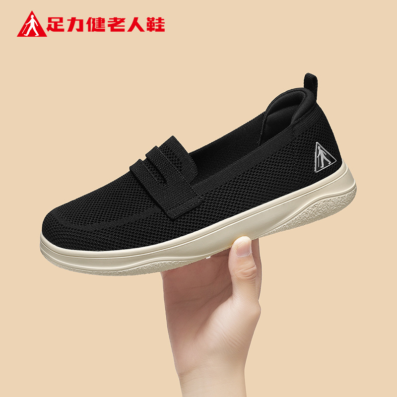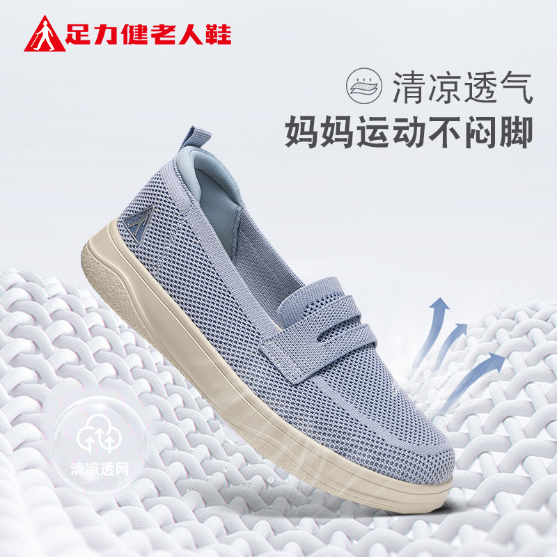 网面一脚蹬健步软底舒适女鞋 中年妈妈夏季 旗舰店正品 足力健老人鞋