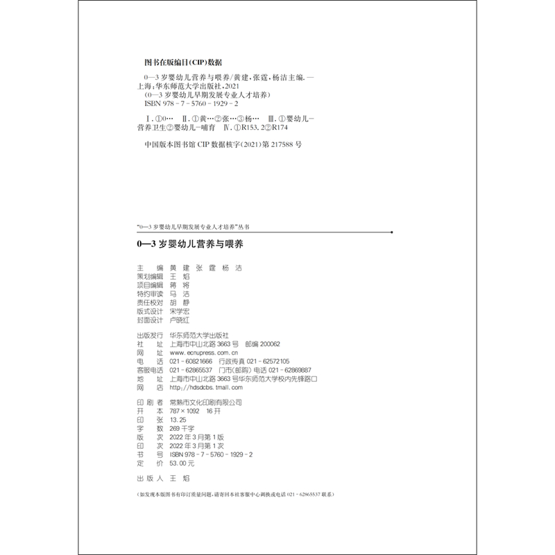 .黄建 3岁婴幼儿早期发展专业人才培养 张霆 杨洁 社 9787576019292华东师范大学出版 3岁婴幼儿营养与喂养