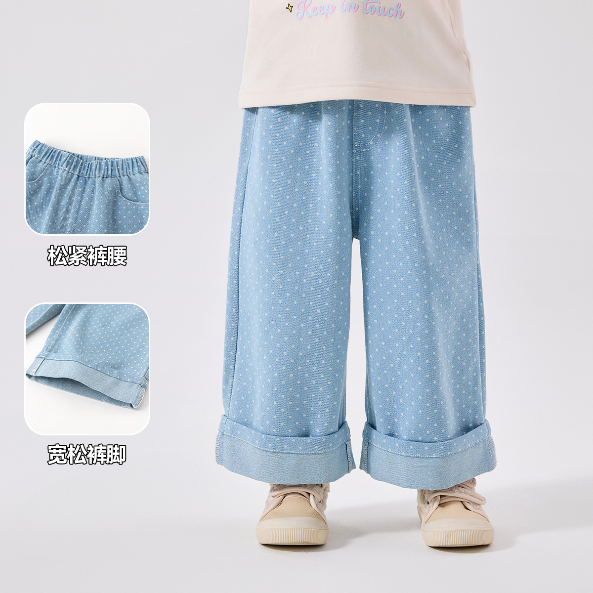 子秋季 女宝波点牛仔裤 秋款 秋装 嘟嘟家女童裤 女孩长裤 潮 软牛仔