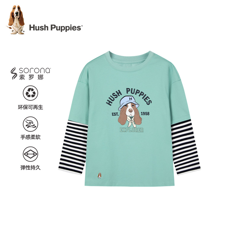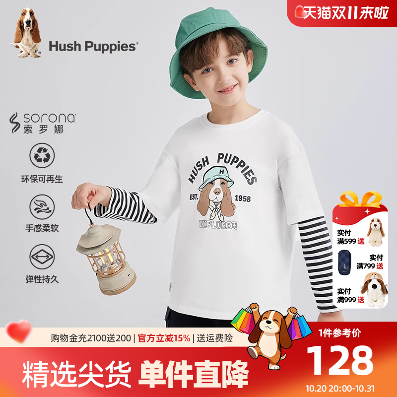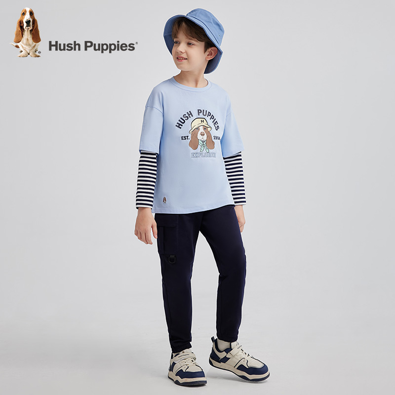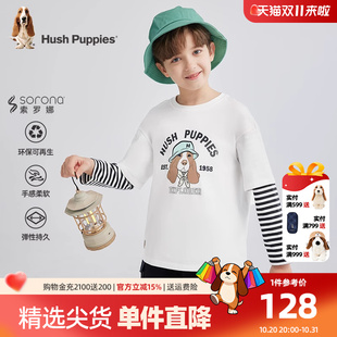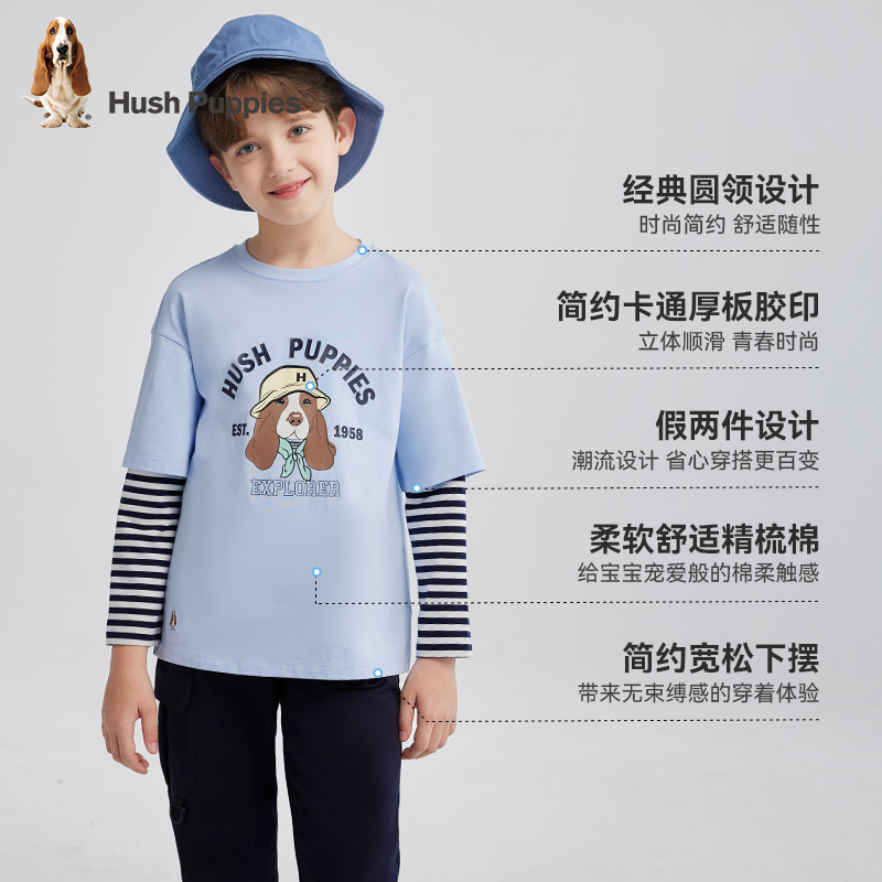 大童洋气假两件上衣儿童圆领衫 t恤25春秋新款 男童长袖 暇步士童装