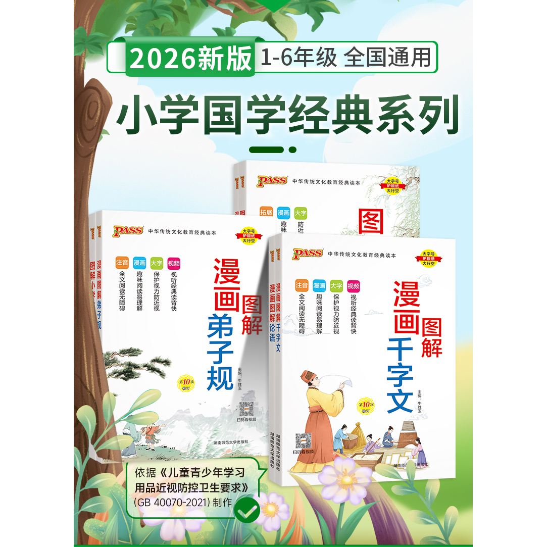 成语故事 弟子规 一至六年级学生语文必背大全集国学经典 漫画图解笔记小学古诗词75 PASS绿卡图书 千字文 80首 论语 2026版 三字经