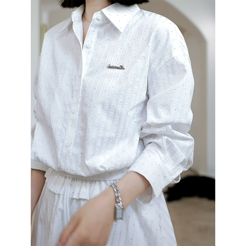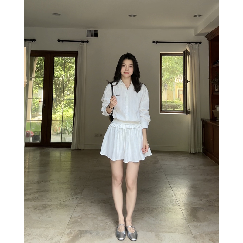 高腰花边伞摆半裙 棉质气质烫钻宽松显瘦衬衫 夏末清仓现货秒发
