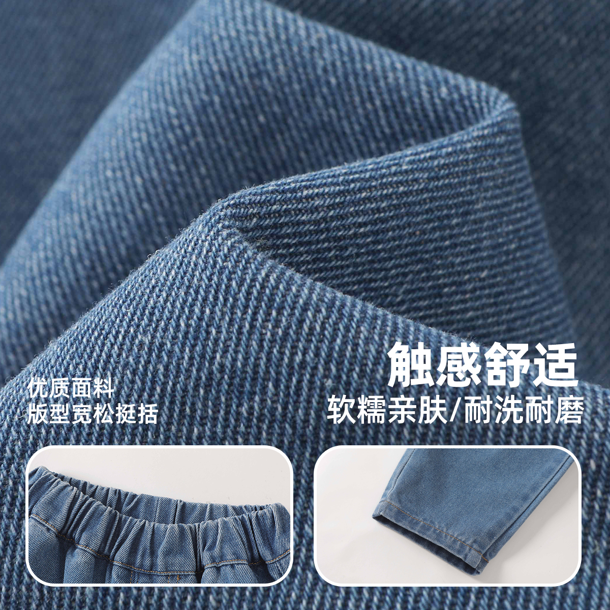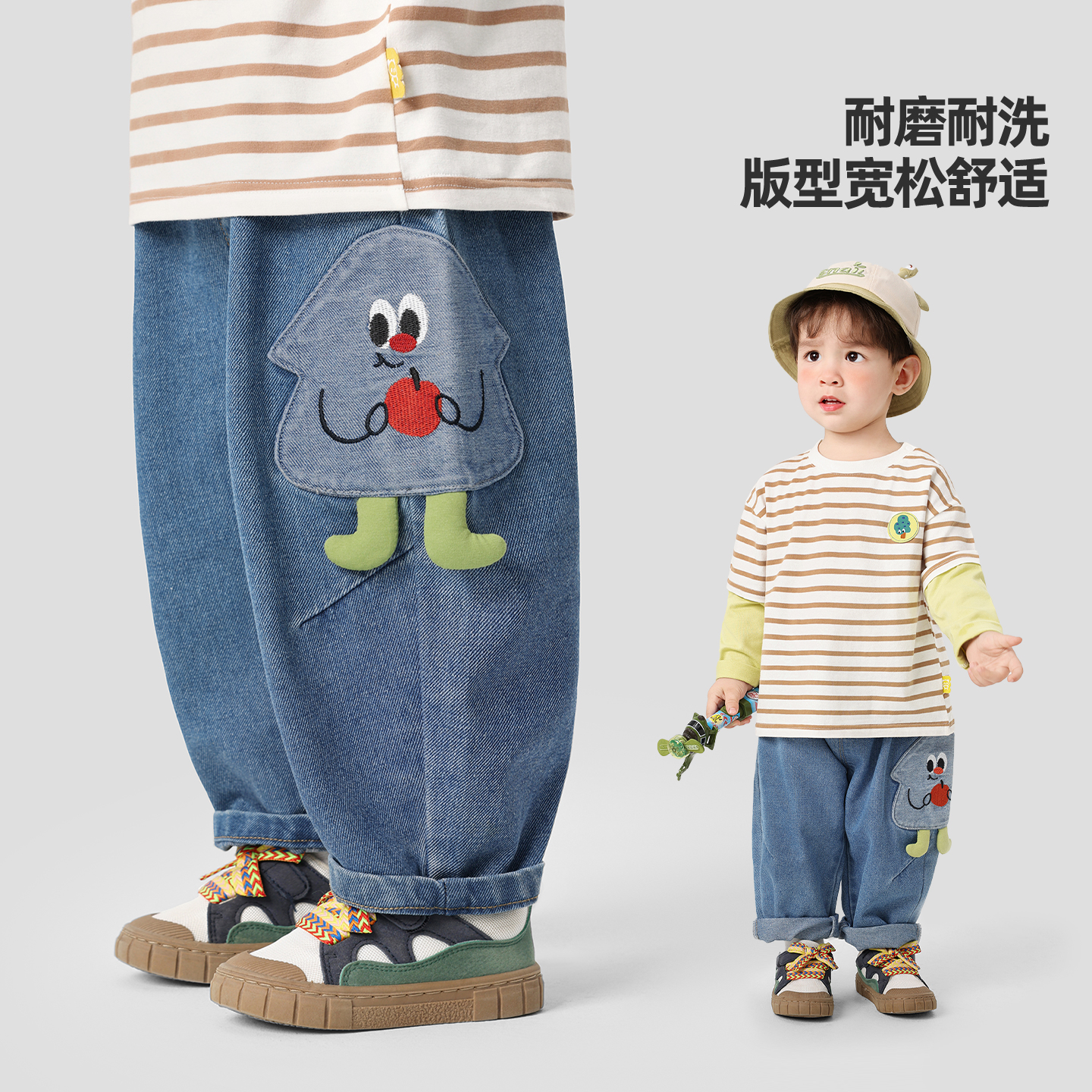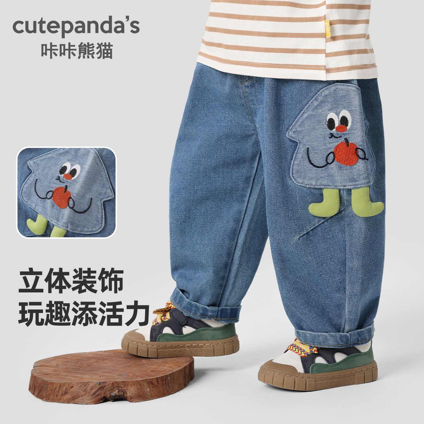 儿童裤 咔咔熊猫宝宝休闲卡通牛仔裤 秋款 男童宽松简约长裤 子潮 秋装