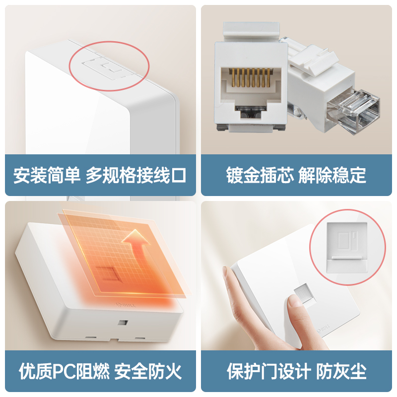 山泽网线面板网络电脑插座86型超五六类千兆信息模块双接口网线盒