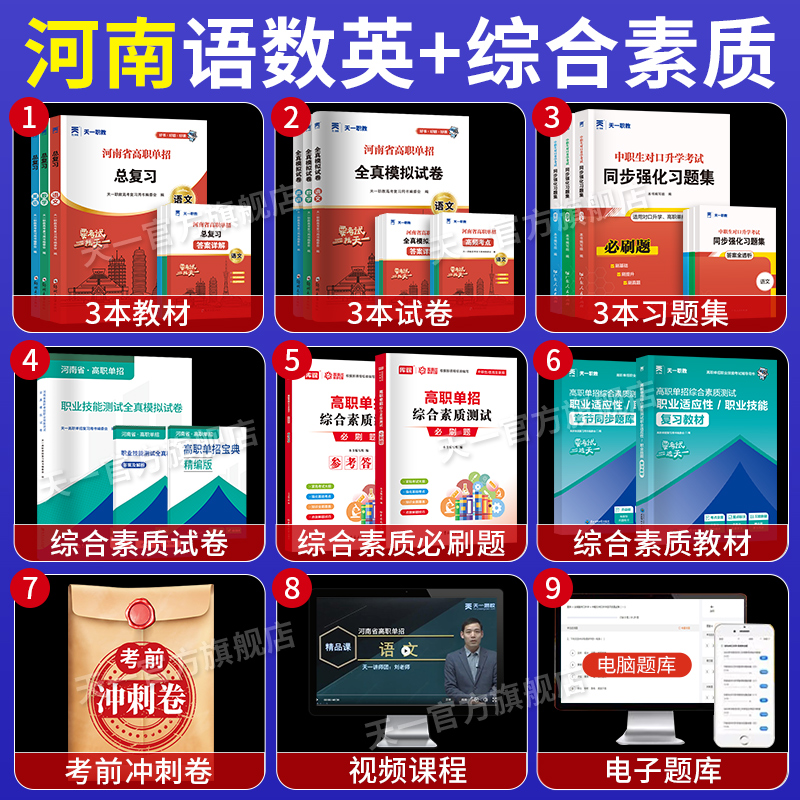 天一2026年河南省高职单招考试复习资料综合素质职业适应技能测试专项题中职生对口升学医学语数英考试教材真题高等职业院校单招面