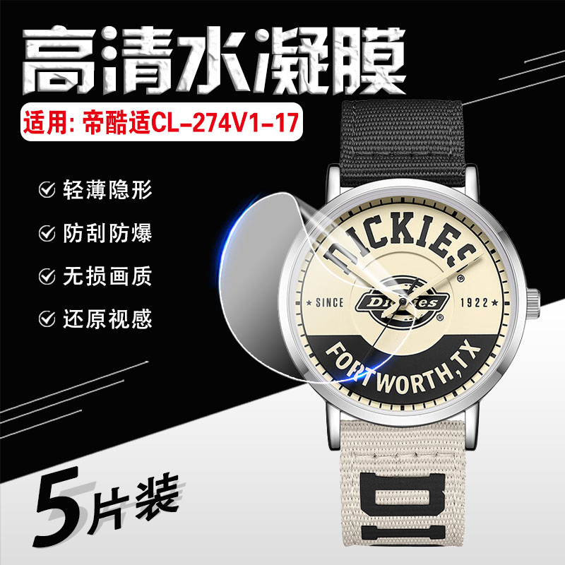 适用Dickies手表贴膜帝酷适学生情侣表CL V1屏幕保护膜V3尼龙表带v4迪凯斯复古男女石英表v6防刮爆水凝膜 274