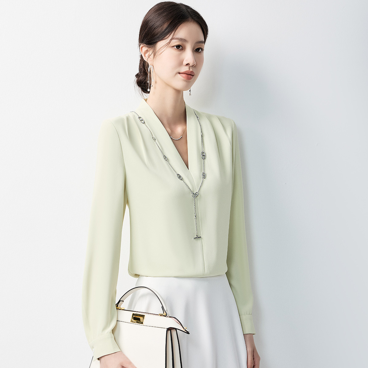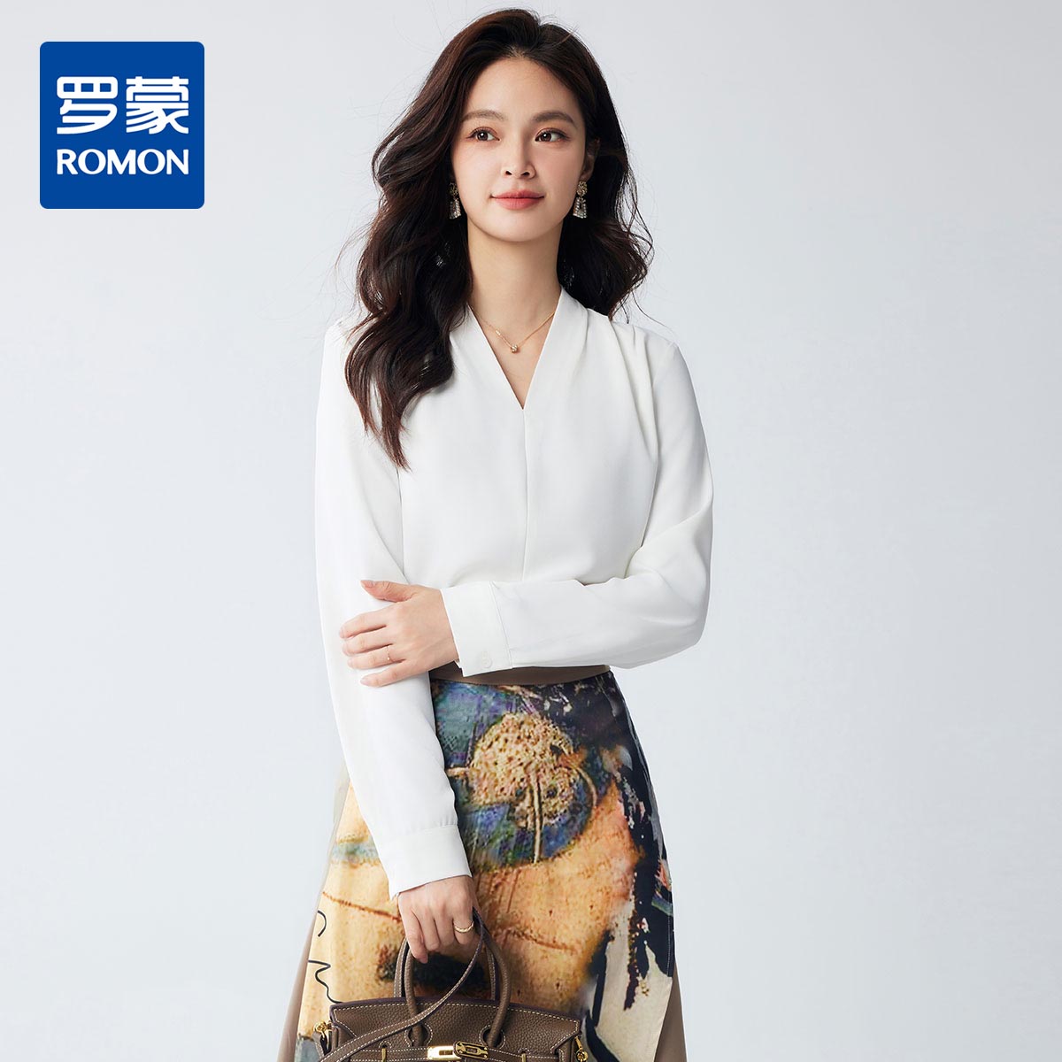 时尚 衬衫 V领设计感商务通勤百搭衬衣女 女士长袖 罗蒙春夏雪纺衫