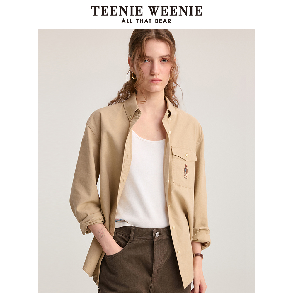 学院风牛津纺淡粉色长袖 TeenieWeenie小熊秋季 衬衫 赵露思同款