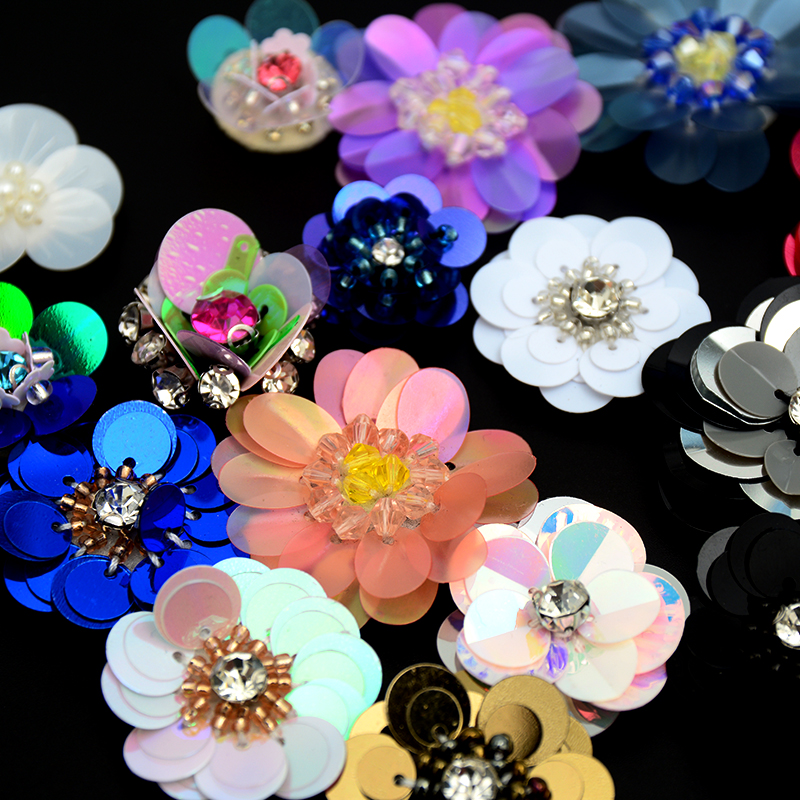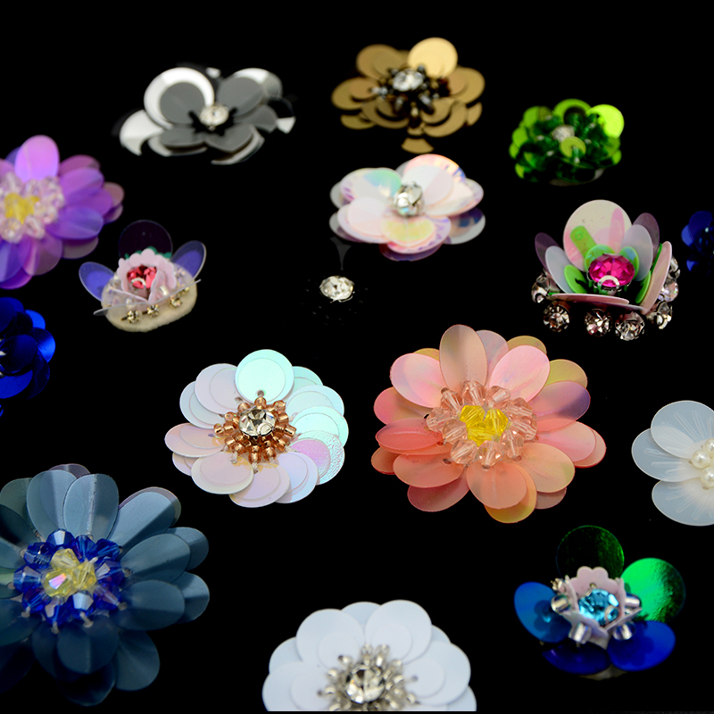 饰花朵手缝 子包包装 多色立体手工花亮片珠片花布贴diy服装 辅料鞋