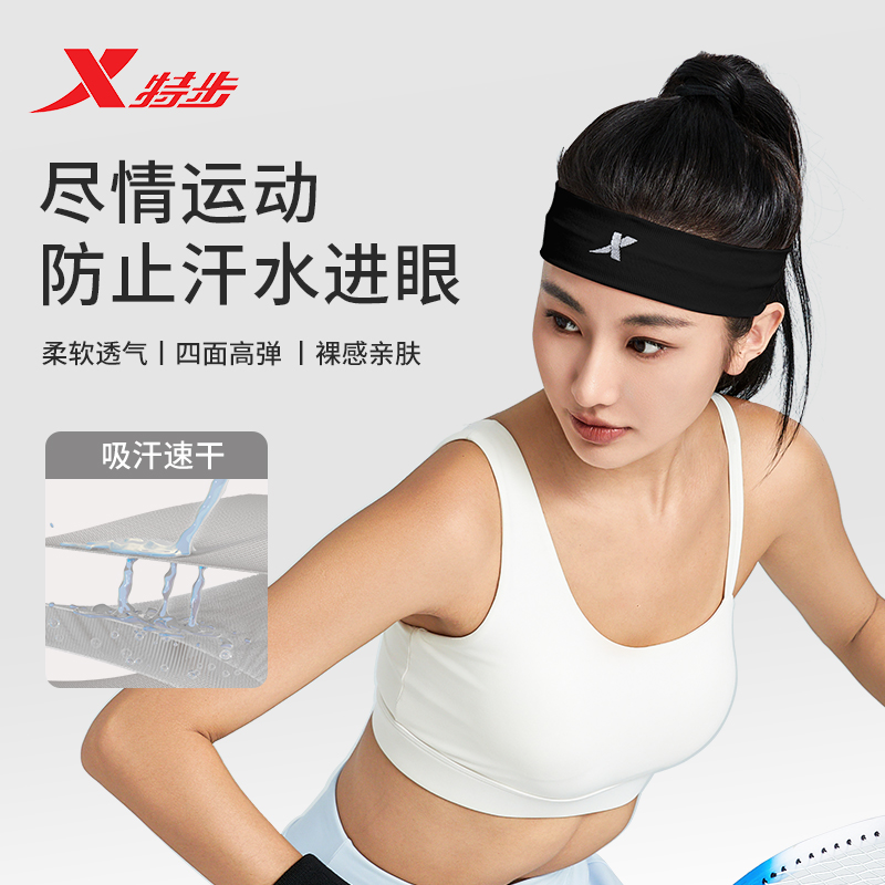 特步运动发带止汗女吸汗跑步导汗带瑜伽头巾头带男生健身篮球头套