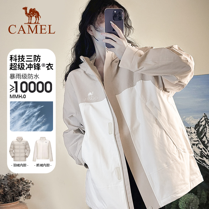 骆驼户外北风木黛色冲锋衣男女羽绒服防风防水登山服秋冬情侣外套