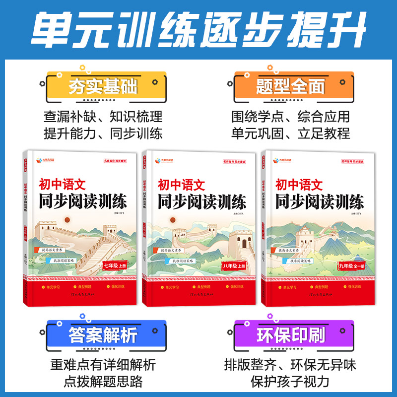 初中七八九年级上下册语文同步阅读训练阅读理解通用版 初一二中考必刷题必备基础巩固知识梳理大全写作借鉴提升真题演练辅导资料书
