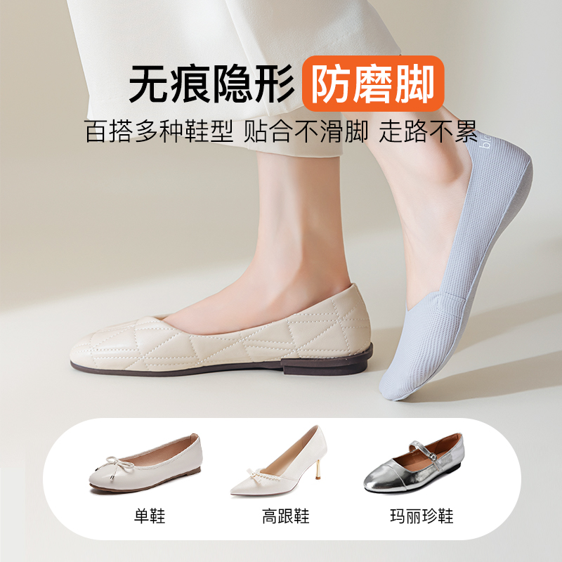 单鞋 防滑不掉跟棉底配高跟鞋 夏天浅口隐形袜子 薄款 冰丝船袜女夏季