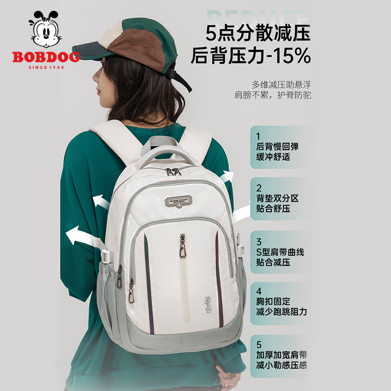Lee书包女高中初中通勤双肩包大学生旅游背包轻便户外运动电脑包